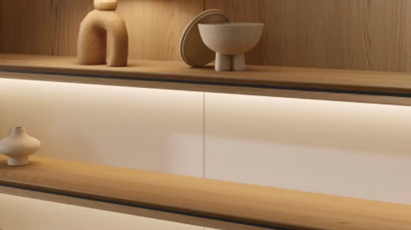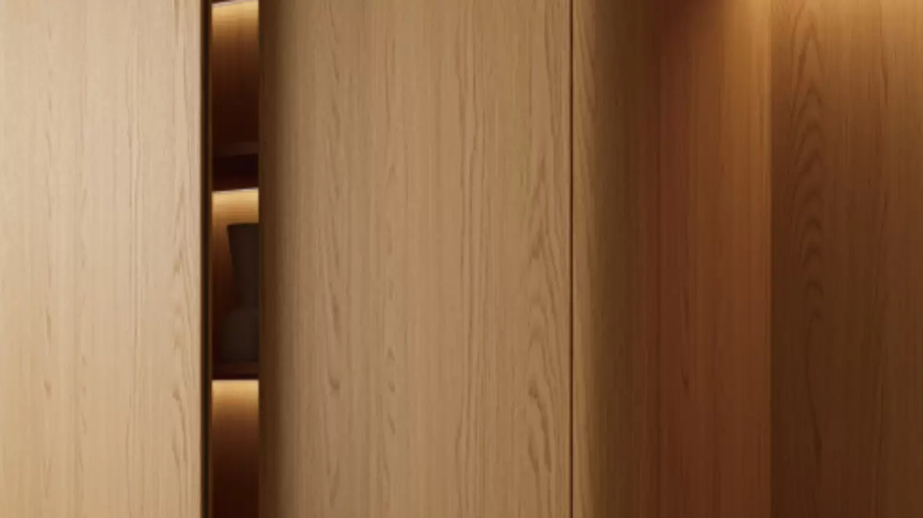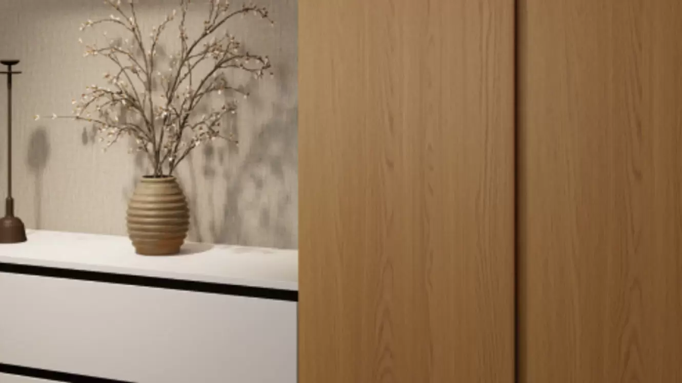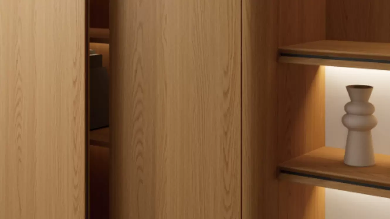 يجمع تصميم ميجو الخشبي الطبيعي بين راحة الطبيعة. بخشب البلوط الأحمر الكاليفورني، الممزوج بقماش الكتان الأبيض الأنيق وحجر الكهف، يجمع هذا التصميم البسيط والديناميكي في آنٍ واحد.